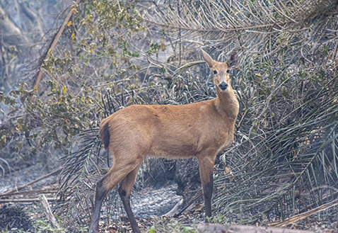 “Pipa, la ciervo del pantano rescatada no resistió, tenía una infección muy fuerte y las patas se encontraban con quemaduras y mordeduras que al parecer la había atacado un caimán”, relata Daniela Justiniano, miembro del grupo rescatista voluntario Alas Chiquitanas.