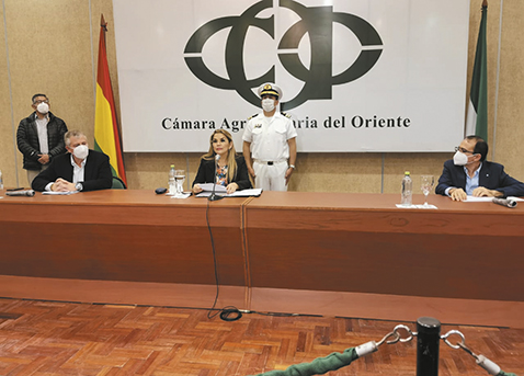 Aprovechando la oportuna visita de la presidenta Jeanine Áñez a los productores cruceños representado a través de la Cámara Agropecuaria del Oriente (CAO), su presidente, Reinaldo Díaz, alertó para los próximos días un riesgo de falta de alimentos en el país, si al sector no se le apoya de manera urgente con financiamiento.