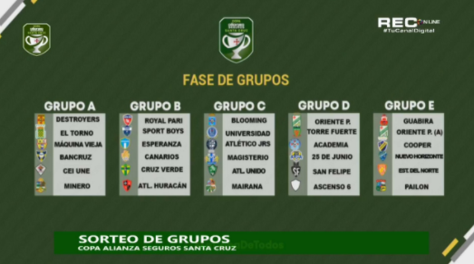 Este 7 de noviembre arranca la primera edición de la Copa Alianza Santa Cruz, donde participarán los equipos cruceños de la División Profesional (Blooming, Oriente Petrolero , Guabirá y Royal Pari) y de la Asociación Cruceña de Fútbol (Primera A, B y Ascenso), además de clubes provinciales.
