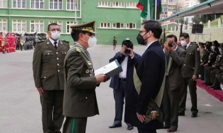 El flamante ministro de Gobierno, Carlos Eduardo Del Castillo, recibió este martes el reconocimiento de la Policía Boliviana, con la cual se comprometió a respetar su institucionalidad.
