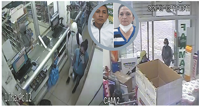 Las cámaras de seguridad y el trabajo minucioso de los investigadores de la FELCC, permitió la identificación y captura de Francisco Quispe Condori de nacionalidad peruana y su pareja Blanca Jimena Gonzáles Egüez (boliviana) acusados de ser los autores de los robos en farmacias y laboratorios relacionados al rubro de la medicina.