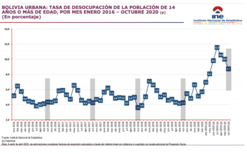 La cifra representa un descenso en la tasa de desocupación respecto a meses anteriores. Es 1,3 puntos porcentuales menor que la tasa registrada en septiembre (10%) y 2,8 puntos porcentuales inferior a julio (11,6%), que fue la cifra más alta registrada en esta gestión.