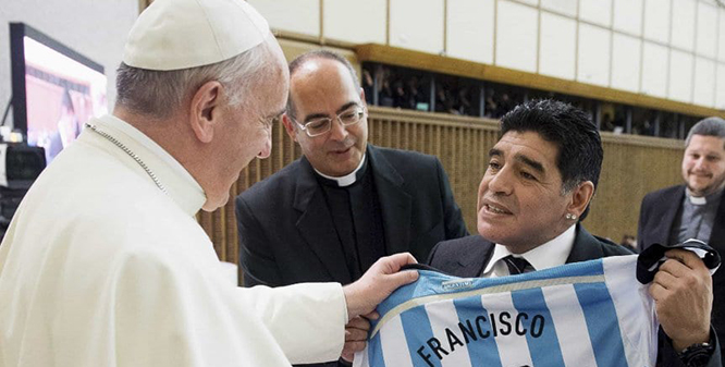 Papa Francisco. "El Papa fue informado de la muerte de Diego Maradona, recuerda con cariño las veces que se reunió con él en estos últimos años y lo recuerda en sus oraciones, como lo hizo en los últimos días cuando fue informado de su condición”, dijo el portavoz del Vaticano, Matteo Bruni.
