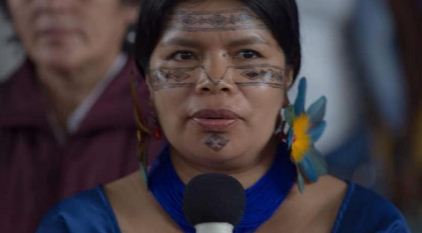 Patricia Gualinga, es parte como jueza del TIDN. Es defensora de los derechos de los nativos y de la Madre Tierra, presentó un caso histórico ante el Sistema Interamericano de Derechos Humanos (SIDH) del pueblo Kichwa de Sarayaku de Ecuador y accedió a una entrevista con ANF.