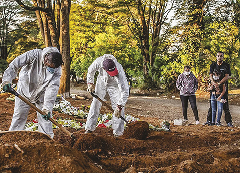 Tasa de fallecimientos estable. Casi 5.900 personas mueren cada 24 horas por COVID-19 en promedio, según cálculos de Reuters basados en datos de las últimas dos semanas terminadas al viernes. La cifra es equivalente a 246 por hora, o una cada 15 segundos.
