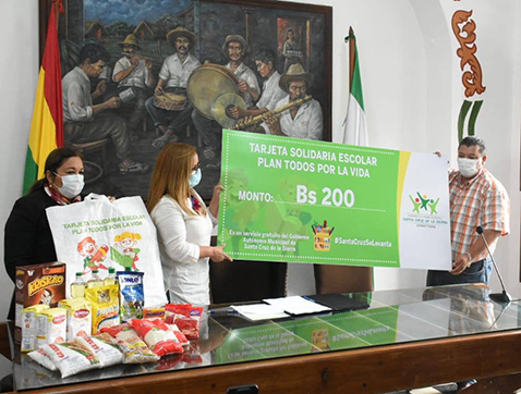 A través de las redes sociales la alcaldesa interina, Angélica Sosa anunció que en las próximas horas se definirá la modalidad para entregar a padres de familia de niños en niveles prescolar y escolar la ‘Tarjeta Solidaria Escolar’ que les permite recibir productos de la canasta familiar por un valor de Bs 200.