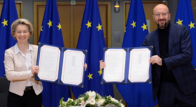 La presidenta de la Comisión Europea, Ursula von der Leyen, y el titular del Consejo Europeo, Charles Michel, firmaron este miércoles en Bruselas los tres tratados del acuerdo que regirá las relaciones comerciales posbrexit con el Reino Unido a partir de 2021. La firma se produce después de que ambas partes lograran en Nochebuena un acuerdo 'in extremis' sobre sus vínculos tras el brexit, tras unos meses de negociación agónica.