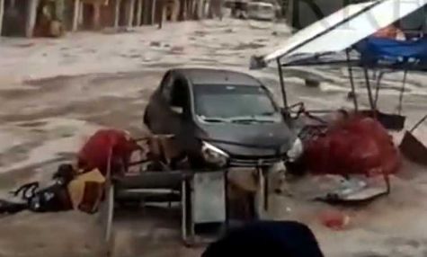 La tarde de este lunes una fuerte tormenta con granizo sorprendió a los habitantes de Sucre inundando calles y avenidas, arrastrando vehículos, puestos de mercado y generando zozobra en los vecinos y sobre todo en los comerciantes.