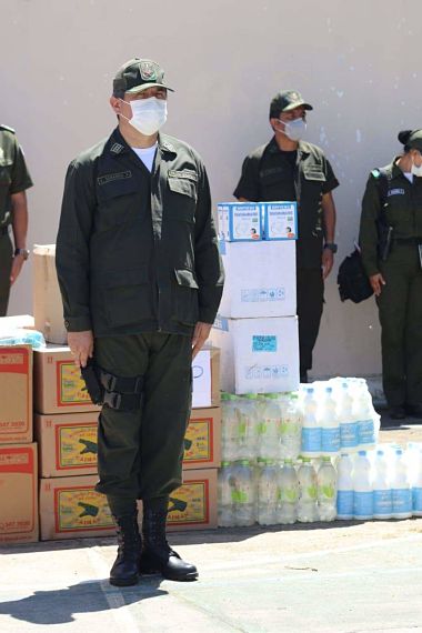 En un acto realizado en el Comando Departamental de la Policía en Santa Cruz, el ministro de Gobierno, Eduardo Del Castillo, entregó barbijos, lavandina, alcohol y otros implementos de bioseguridad al personal de primera línea en la lucha contra el Covid-19, para evitar contagios del virus en la institución verde olivo.