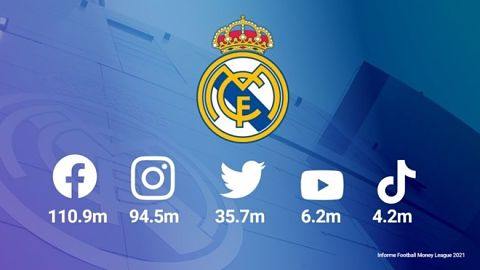 El Real Madrid es el cub del mundo con más seguidores en redes sociales, un total de 251,5 millones de fans, por delante del Barcelona, con 248 millones, y muy por delante de otras potencias como el Manchester United, la Juventus o el Bayern de Múnich.