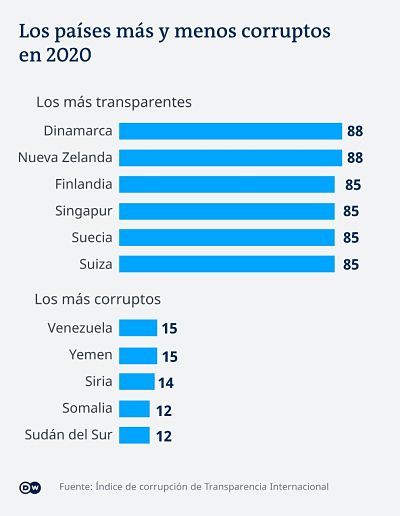 En cambio, el país menos corrupto de la región es Costa Rica, que se ubica en el puesto número 57, Chile (67) y Uruguay, en la ubicación número 71.