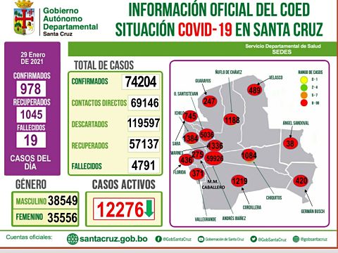 Santa Cruz superó los 95 mil casos de Covid-19 en El Día