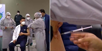 El médico intensivista recibió la vacuna tras cumplir con un protocolo de inmunización explicado por la viceministra de Promoción, Vigilancia Epidemiológica y Medicina Tradicional, María Renee Castro.