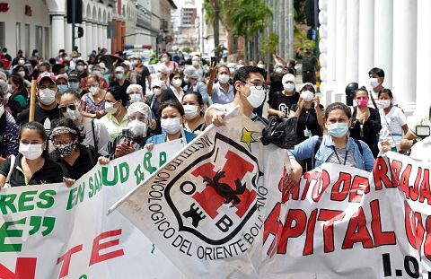 Los médicos y trabajadores del sector salud de Santa Cruz cumplieron este martes un paro de 24 horas a nivel departamental para exigir que las autoridades declaren una cuarentena rígida para contener la propagación del coronavirus. Los dirigentes del sector manifestaron haber agotado todas las instancias de dialogo tras haber dado los plazos pertinentes a las autoridades municipales y departamentales, para que sus demandas sean atendidas. Por otro lado, las Emergencias, así como los responsables de tomar las muestras para el Covid-19, trabajaron normalmente.
