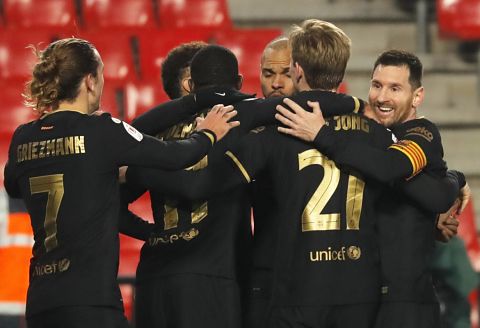 Barcelona logró igualar sobre la hora en su visita a Granada (2-2), para golear por 5 a 3 en el tiempo suplementario y avanzar a las semifinales de la Copa del Rey.
