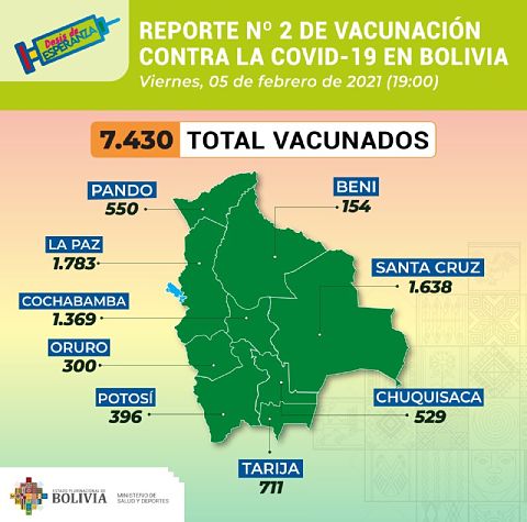 Bolivia registra un total de 7.430 vacunados