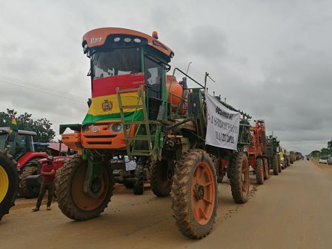 Productores cruceños realizan un 'tractorazo' en rechazo a la banda de precios de la harina de soya