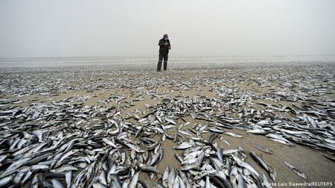 Miles de peces aparecieron muertos en una playa y otros varados en la desembocadura de un río en las costas del sur de Chile, ante una posible asfixia por el menor oxígeno en el agua, informó este lunes (15.02.2021) el Servicio Nacional de Pesca y Acuicultura (Sernapesca).