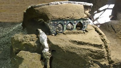 Una gran carroza ceremonial de cuatro ruedas, con elementos de hierro, decoraciones de bronce y estaño, restos de madera mineralizada, y huellas de elementos orgánicos, como las cuerdas, ha sido encontrada casi intacta en el área arqueológica de Pompeya (sur de Italia), la ciudad sepultada en el 79 dc. por la erupción del Vesubio.