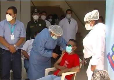 La vacunación masiva y gratuita contra el COVID-19 comenzó este domingo en el departamento de Chuquisaca, donde el primer inmunizado fue Franz Grover Mamani, enfermo renal crónico, quien agradeció al presidente Luis Arce por la dosis contra el COVID-19.