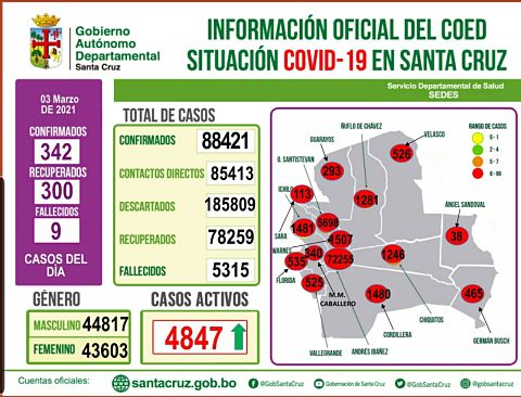 ...Santa Cruz suma 447 nuevos contagios y 9 decesos por Covid-19 en El Día
