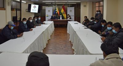 El ministro de Obras Públicas, Servicios y Vivienda, Edgar Montaño, y los transportistas movilizados acordaron este martes la suspensión de las tarjetas de operación que entregó de forma irregular el gobierno de facto de Jeanine Áñez a líneas de transporte.