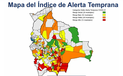 De acuerdo con los datos, 176 municipios en Bolivia deben estar en alerta, implementar y reforzar medidas de prevención y/o contención para evitar el riesgo de propagación del virus, indica el documento de la entidad gubernamental de la salud.
