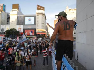 El mítico Obelisco porteño, donde los argentinos celebraron en 1986 la obtención de la Copa del Mundo de México gracias a Diego Maradona, volvió a convertirse este miércoles en el punto de encuentro de cientos de fanáticos del astro del fútbol que bramaron una idea clara: "No se murió, lo mataron".