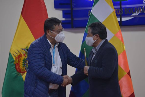 En un acto realizado en el Aeropuerto de El Alto, el presidente entregó el bastón de mando al vicepresidente David Choquehuanca, quien ejercerá como primer mandatario mientras dure la ausencia de Arce.
