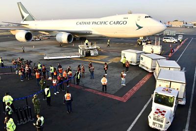 “Hoy recibimos a las 4:34 am, en el vuelo CX086 TEA Cathay Pacific Cargo un cargamento de un millón de vacunas Sinovac #Covid19 provenientes de China. #BirmexAlMomento”, escribió desde su cuenta de Twitter el laboratorio Birmex.
