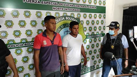 Mario Saldaña Machado y Cristian Ríos Angulo fueron presentados la mañana del viernes relacionados a una serie de atracos cometidos en la ciudad de Montero a bordo de motocicletas.