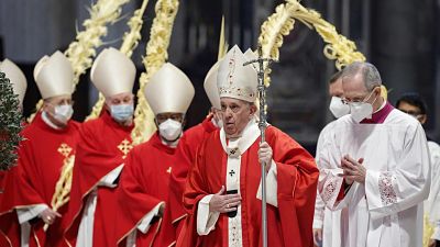 El papa Francisco celebró la misa del Domingo de Ramos, que marca la entrada en la Semana Santa, y rezó el Ángelus en presencia de un reducido número de fieles invitados en la Basílica de San Pedro del Vaticano.