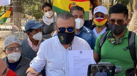 En la denuncia también se pide la renuncia de Lanchipa, por "socapar", blindar y proteger a Evo Morales, indicó el presidente del Comité Cívico pro Santa Cruz, Rómulo Calvo.