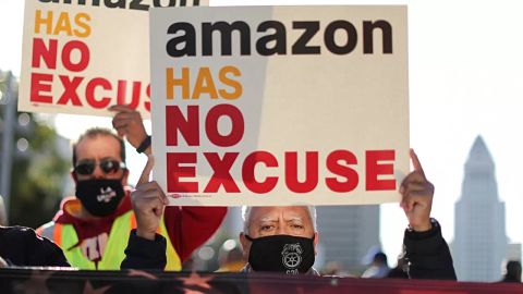 A Amazon le crecen los sindicalistas. En plena pandemia, el gigante mundial del comercio electrónico duplicó sus beneficios hasta los 18.105 millones de euros en el último año, pero la compañía aún comandada por Jeff Bezos -quien se disputa con Elon Musk el título del hombre más rico del mundo-, se ha visto salpicada por una serie de escándalos relacionados con su aversión a los sindicatos. El éxito de la plataforma se debe, en buena medida, a la flexibilidad que se les exige a sus trabajadores rasos (almacenes y transporte) y a la estrategia, bien medida, de impedir que se organicen para reclamar mejoras laborales.