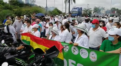 Una jornada de bloqueos esporádicos y movilizaciones iniciaron las protestas del sector médico de Santa Cruz, en rechazo a la Ley de Emergencia Sanitaria.