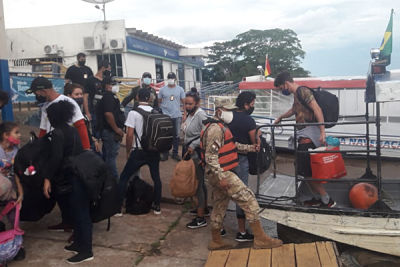El Ministerio de Defensa informó este sábado que el personal de la Policía de Navegación de la Capitanía de Puerto Mayor “Sócrates Vargas Camacho” detuvo a 11 ciudadanos de nacionalidad cubana en la localidad de Guayaramerín, Beni, cuando trataban de pasar por la frontera cerrada entre Brasil y Bolivia sin documentación en orden, ni el certificado negativo de la prueba PCR para el COVID-19.