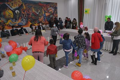 Autoridades del Órgano Legislativo y Ejecutivo realizaron este lunes un agasajo en instalaciones de la Casa Grande del Pueblo como homenaje al Día de la Niña y Niño Boliviano, que se celebra este 12 de abril.