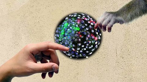 La revista especializada Cell, que publica los resultados, ha ilustrado el anuncio con una alegoría de La creación de Adán, el fresco de Miguel Ángel en la Capilla Sixtina en el que la mano del dios bíblico da vida al primer hombre de la tradición cristiana. En el nuevo dibujo, una mano de mono y otra humana parecen insuflar energía a un embrión mixto.