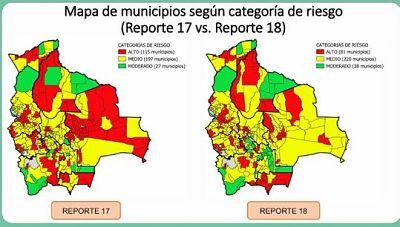 Asimismo, el reporte da cuenta que los municipios en ‘riesgo medio’ subieron de 197 a 220 y los de ‘riesgo moderado’ de 27 a 38.