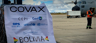 El cargamento es parte de la donación que realizó a Bolivia el mecanismo Covax, un sistema que busca el acceso equitativo de los países a las vacunas y está integrado por la Coalición para la Promoción de Innovaciones en pro de la Preparación ante las Epidemias (CEPI), la Alianza Mundial para las Vacunas e Inmunización (Gavi), el Fondo de las Nacio