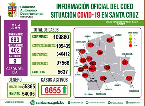 Covid en Santa Cruz: 670 contagios nuevos y 656 recuperados en El Día