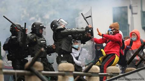 La brutalidad policial impera contra manifestantes colombianos en Los Tiempos