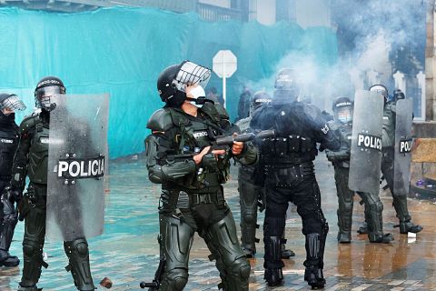 La brutalidad policial impera contra manifestantes colombianos en Los Tiempos