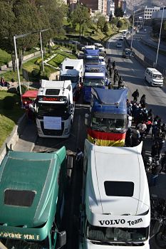 Transporte pesado se moviliza en rechazo a la reactivación del ferrocarril Arica – La Paz