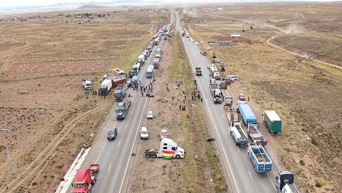 Desde el lunes, transportistas mantienen un bloqueo en la zona de Suticollo, en la carretera que conecta a Cochabamba con Oruro y La Paz, en rechazo al proyecto. Lorenzo Tórrez, dirigente de la Cámara Departamental de Transporte (Cadetran) de La Paz, añadió que este martes han cortado las rutas hacia Perú y Oruro. “Nos va afectar en caso que se active el tren a Arica, los compañeros van a migrar a nivel nacional. Es una masacre que nos están queriendo hacer, una relocalización total a nuestro sector”, advirtió Tórrez, según la agencia AN