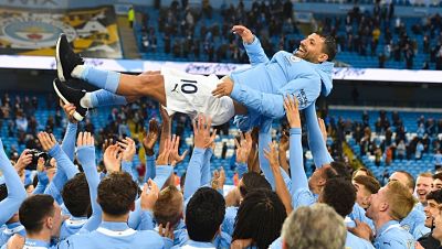 Agüero se despide de la Premier League con doblete y un emotivo homenaje
