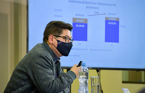 Indicó que, en el caso de La Paz, en el período de enero a abril ha incrementado de 196.4 millones de bolivianos del año pasado a 223.2 millones en 2021, siendo el mayor ingreso por concepto de coparticipación tributaria.