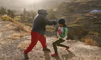Desde tempranas horas, Gracce Kelly Flores corre a través de una carretera polvorienta a los pies de las montañas cerca de La Paz, en Bolivia, para cumplir con su rutina de entrenamiento de boxeo que inició hace cuatro años.
