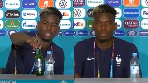 Pogba se suma a Cristiano: retira una botella de cerveza en una rueda de prensa de la Eurocopa