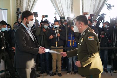 “Estamos aquí para comunicar al pueblo boliviano sobre la creación del Departamento Nacional de Investigación Especializada en Lavado de Dinero y Financiamiento al Terrorismo, con el objetivo de optimizar la investigación de este tipo de delitos por parte de nuestra FELCC; pero, tamb